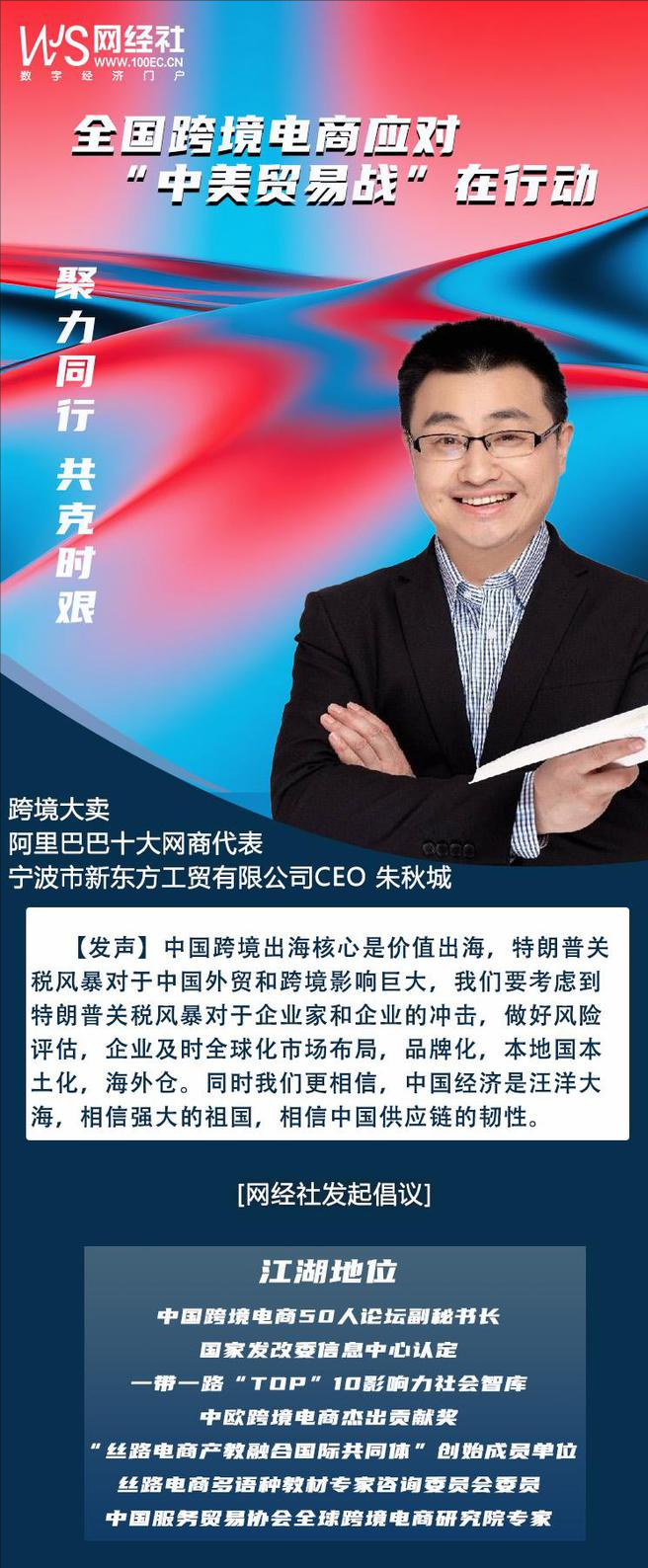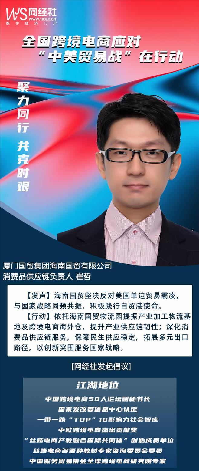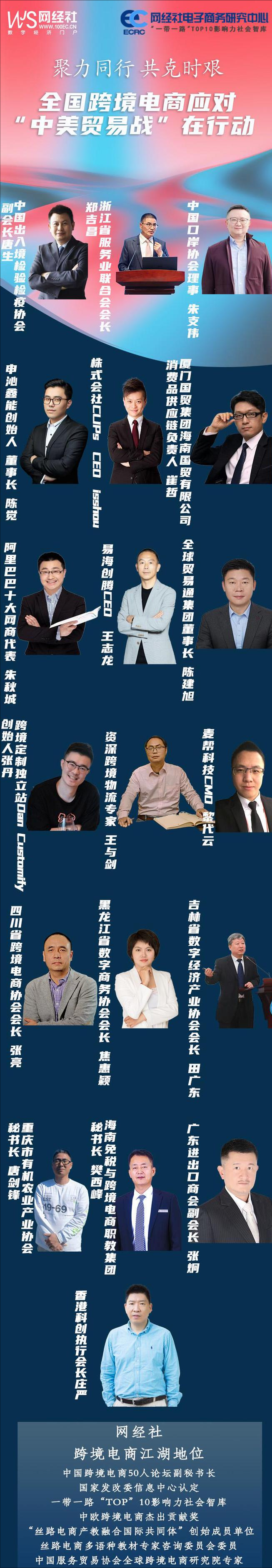 針對美國無理挑釁,對我國進出口特別是跨境電商企業的影響,為凝聚中國跨境電商行業全體共識和力量,共同應對嚴峻挑戰,作為“一帶一路TOP10影響力社會智庫”、“中國跨境電商50人論壇”副會長單位、“絲路電商產教融合國際共同體”創始單位——網經社啓動:“聚力同行,共克時艱:跨境電商應對中美貿易在行動”主題策劃。特邀請全國跨境電商平台、賣家、服務商、協會等表態度與講對策。