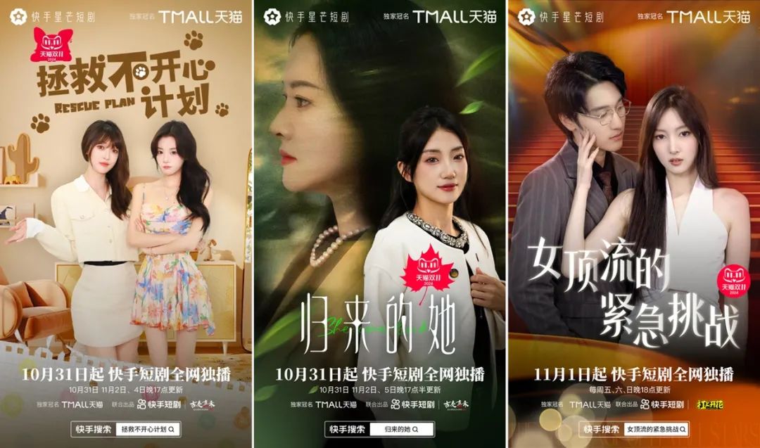 天貓在2024年618和雙11期間與快手星芒精品短劇深度合作,獨家冠名了35部品牌短劇,後來居上的三九藥業緊隨其後,僅在2024年就贊助了28部品牌短劇。