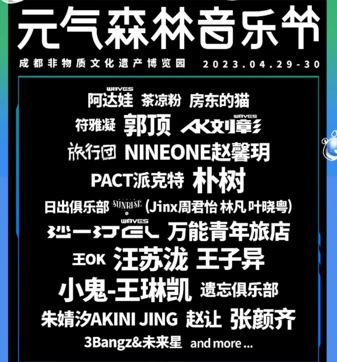 2023年,經歷了近三年的調整,元氣森林音樂節在成都成功落地,經歷了五次改期的首屆元氣森林音樂節邀請到了朴樹、小鬼王琳凱、汪蘇瀧等藝人,線下曝光近十億,線上曝光近30億,共吸引5萬多樂迷參與。