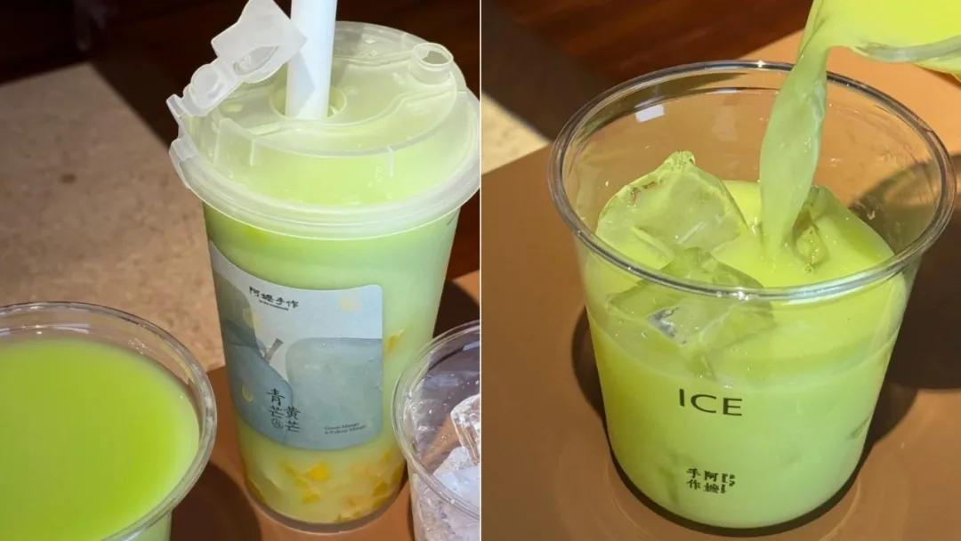 阿嬤手作推出的“鮮青芒冰茶”,將新鮮的生青芒兩次帶皮鮮榨,搭配黃金百香果和茉莉綠茶。每杯配一個小冰杯,讓消費者自由調節冰度,引發大量網友好評:“建議焊死在菜單上”。