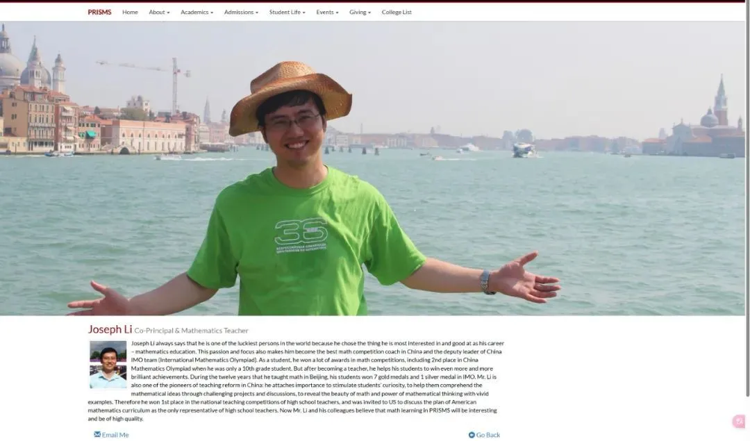 學校的副校長李秋生(Joseph Li)就是個傳奇人物。他曾是人大附中數學組組長,北大數學系畢業,帶出了2009年北京理科高考狀元,還長期擔任中國奧數國家隊教練,率隊多次拿下IMO團體冠軍。來到PRISMS後,他繼續“開掛”,帶着學生在國際賽場摘金奪銀。