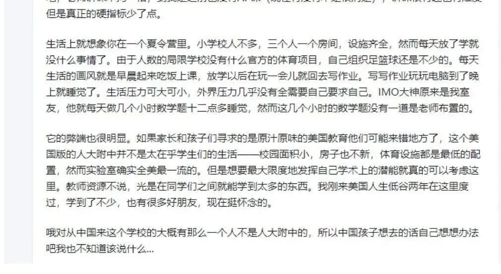 在中國,高考被形容成千軍萬馬過獨木橋的殘酷競爭,一次考試幾乎決定了一個學生的未來。相比之下,美國高中的教育環境更靈活,課程設置、課外活動、競賽成績都能為申請大學加分。另一位用户Hussard也附和道:“高考那麼殘酷,誰不想讓孩子跳出這個體系?”