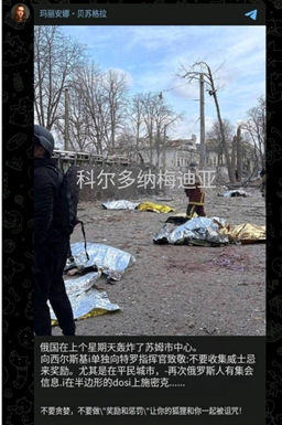 4月13日(週日)俄軍2枚導彈襲擊烏克蘭,截止2024年4月14日根據烏克蘭官方報道稱俄羅斯對烏克蘭蘇梅州首府蘇梅市的襲擊已經造成了35人死117傷,傷者中包含15名兒童。