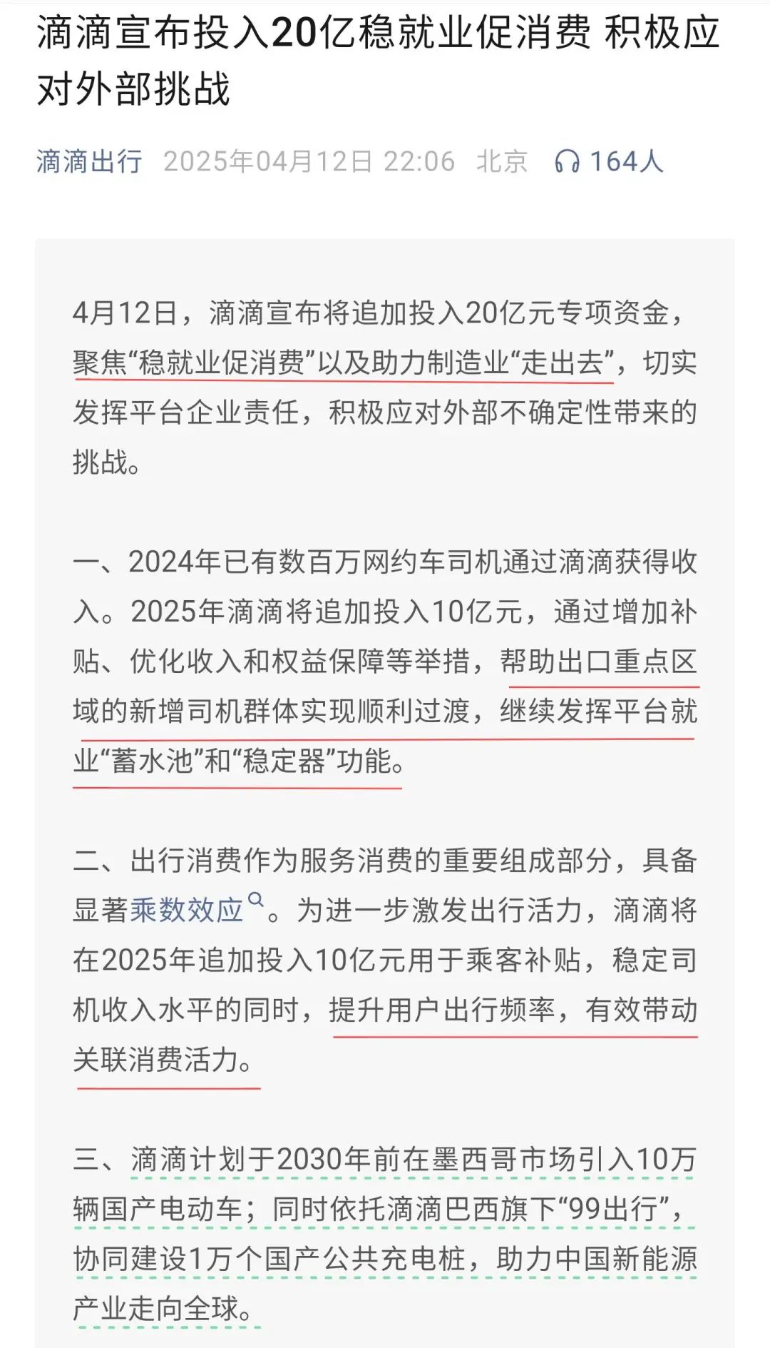 滴滴追投20億背後:內外並舉,穩就業促消費_風聞