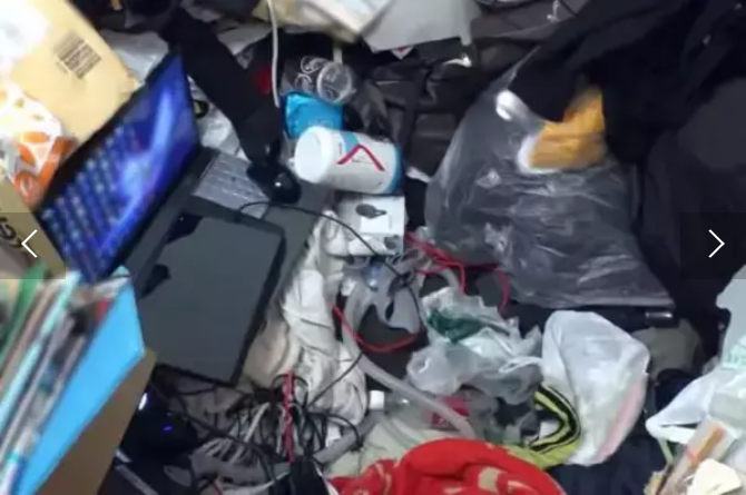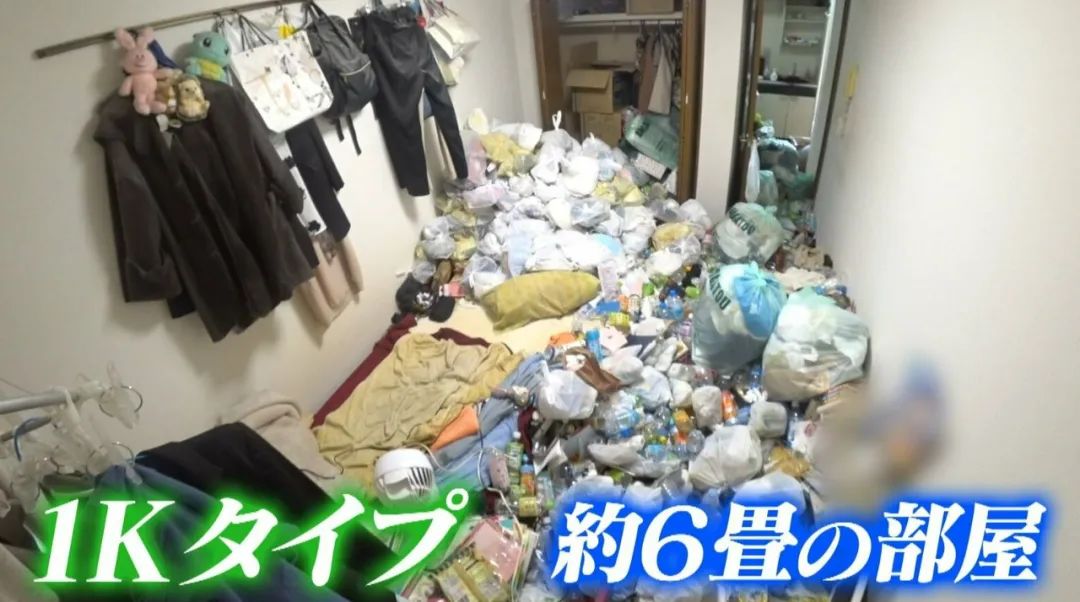當清掃業者來到他家時,就看到了這樣一幅奇異的光景:明明是高級塔樓,卻有着跟樓內完全不同的畫風,2米高的垃圾一直堆到了天花板上,所見之處都是紙箱、雜誌、漫畫……人在這樣的屋子生活,就像倉鼠的巢穴一樣,只能隨便找個坑睡覺。