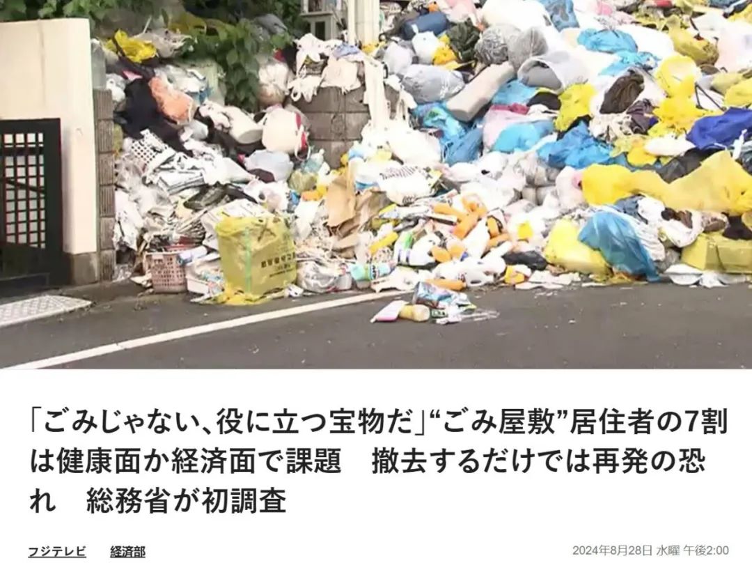 2024年,因為囤積垃圾造成的垃圾屋問題所產生的糾紛越來越嚴重(極易引發火災、蟲害),日本總務省開始調查此事,根據日本2023年環境省的調查,從2018到2022年的四年間,全日本關於垃圾屋的事件達到5224件。