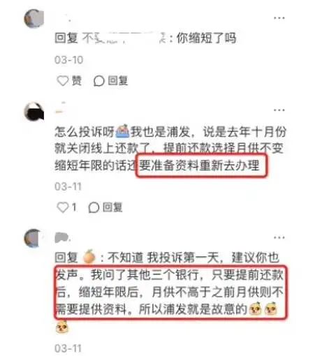 這一切聽起來非常魔幻,都2025年了,還在用人工縮期。浦發總説要學習建行,這點就遠遠落後了,建行的提前還貸只要app線上申請,縮期和不縮期都能自動搞定。