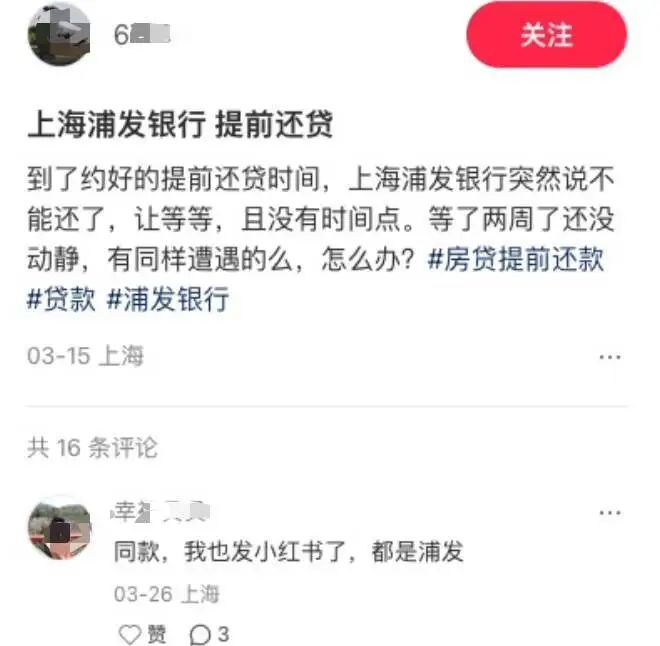 小紅書上,不少網友反映浦發銀行提前還房貸等待週期過長、約好還貸時間突然遭遇後推。