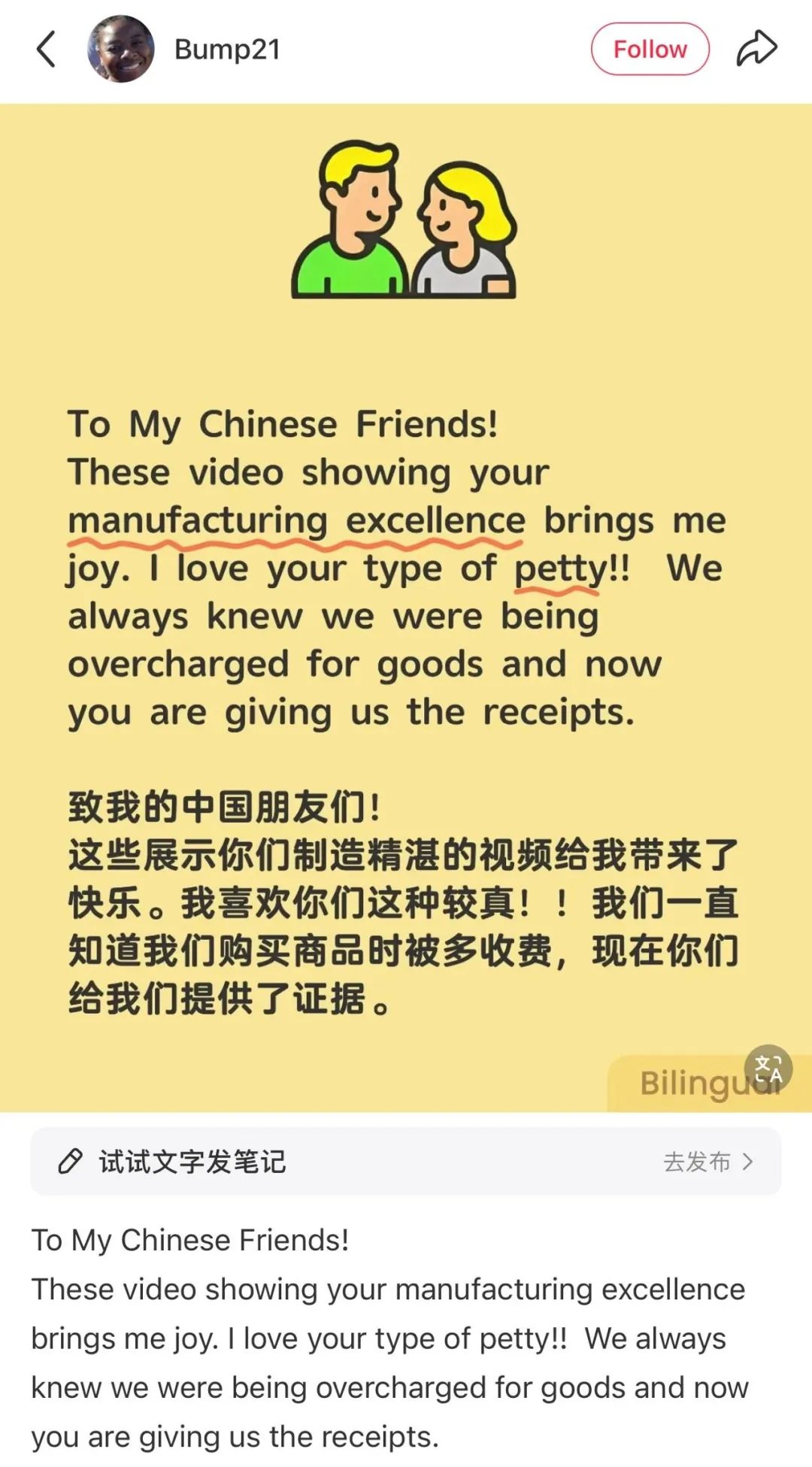 這股風也刮到了小紅書上面,很多美國人發帖對中國網友們的爆料表達的感謝: