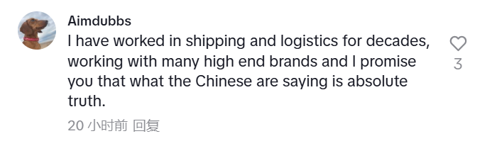 我在航運和物流領域工作了幾十年,與許多高端品牌合作,我向你保證,中國人所説的絕對是事實。