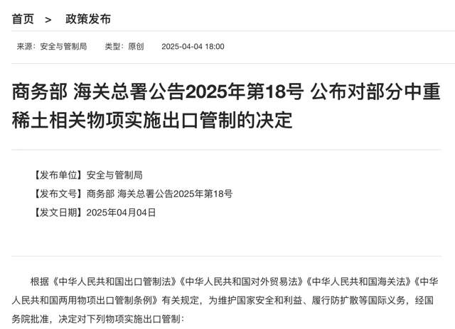 隨着海關總署公告2025年第18號《對部分中重稀土相關物項實施出口管制的決定》的公佈,美方再也無法獲得嚴重依賴中方的相關物資。
