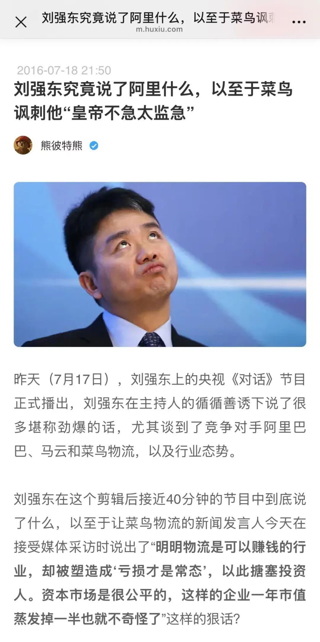 我猜想啊,消費下行,大家都不想去分眾傳媒投框架了…也就難怪京東和其他股東急着把新潮傳媒賣給分眾。通過公關,搞話題,劉強東信手拈來,也是一直是電商圈打“口仗”的好手。