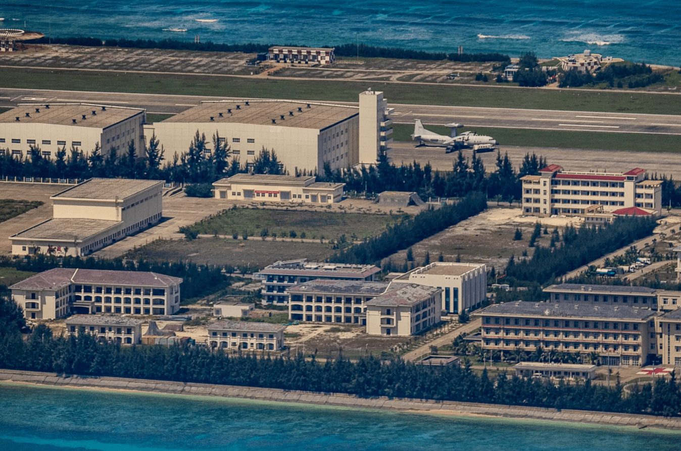 一架KJ-500 AEW&C飛機出現在永暑礁的滑行道上,永暑礁已成為一個高度軍事化的人造島嶼,擁有機場和配套機庫。圖片由Ezra Acayan/Getty Images提供