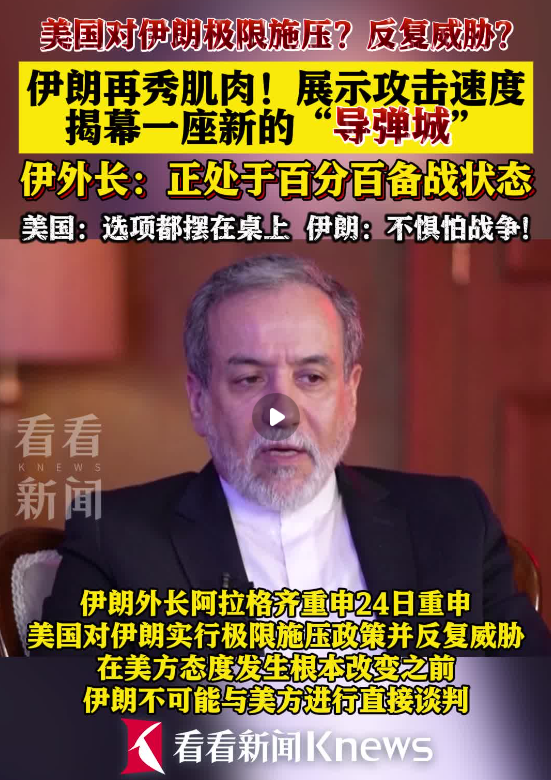 在接受採訪時,伊朗外長阿拉格齊對媒體透露,現在的伊朗正處於百分之百戰備狀態。