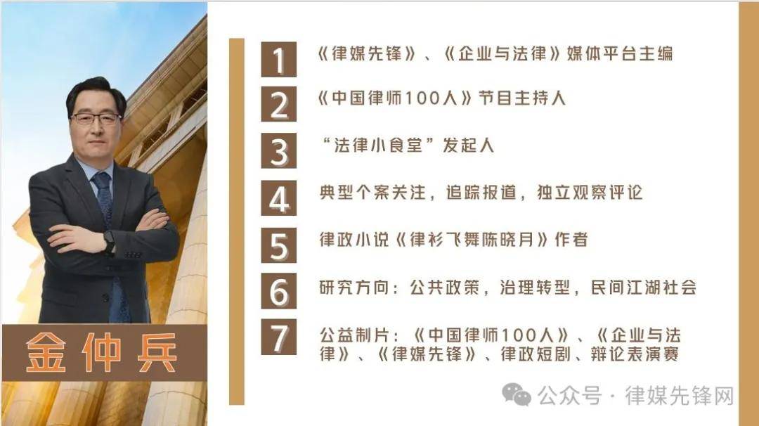 本次錄製活動由《中國律師100人》、“法律小食堂”發起人、《企業與法律》和《律媒先鋒網》主編、律政小説《律衫飛舞陳曉月》作者金仲兵擔任主持和互動嘉賓。