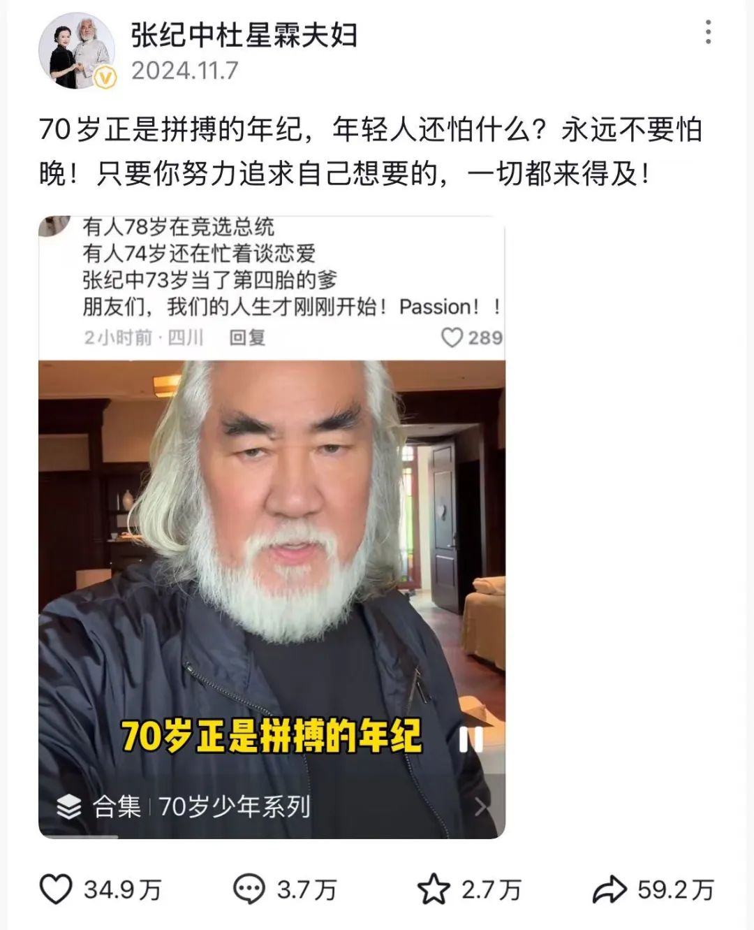 短視頻上火過一個段子,大意説退休後正是闖的時候。不光演員劉曉慶的精力令人豔羨,導演張紀中也喊出“70歲正是拼搏的年齡”。年輕人明裏望老成龍、實則轉移矛盾,火速將這些內容轉發到家族羣,深勸長輩該學習學習、該努力努力。