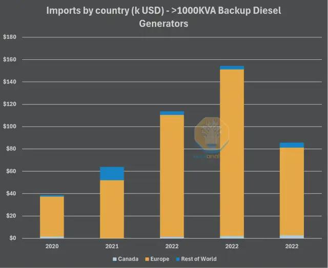 發電機受關税的影響最小。美國組裝的比例極高,製造商通常會製造最昂貴的部件 —— 發動機。交流發電機是另一個成本較高的部件,其進口比例更高,歐洲在這方面佔據領先地位。