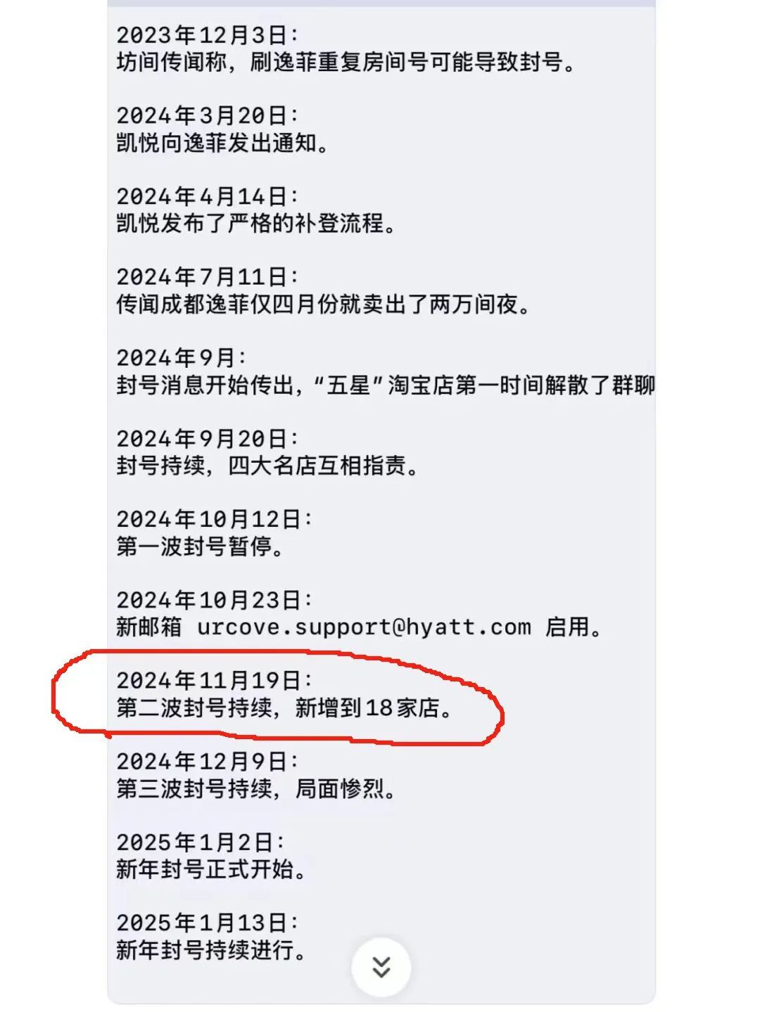 後續影響現在來了。(有興趣可以查看原文:《凱悦大面積封中國會員賬號,原因是被逸扉“偷家”?》)