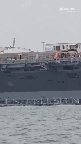 視頻中,確實有一艘“尼米茲”級航母停在碼頭上,且甲板上搭起了一座白色大帳篷,在裏邊不知道搗鼓些啥。其實咱們一看就能看出來,這是“尼米茲”級航母在進行換料大修的照片。