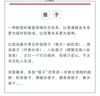 而現在,搭子被賦予了另外一種含義:一種新型的垂直領域社交關係,比朋友的感情淺,比同事的關係規律。