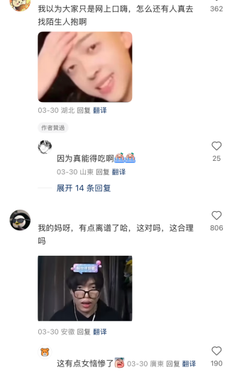 但更多的留言是尋找同款男媽媽,並紛紛亮出自己的IP地址。