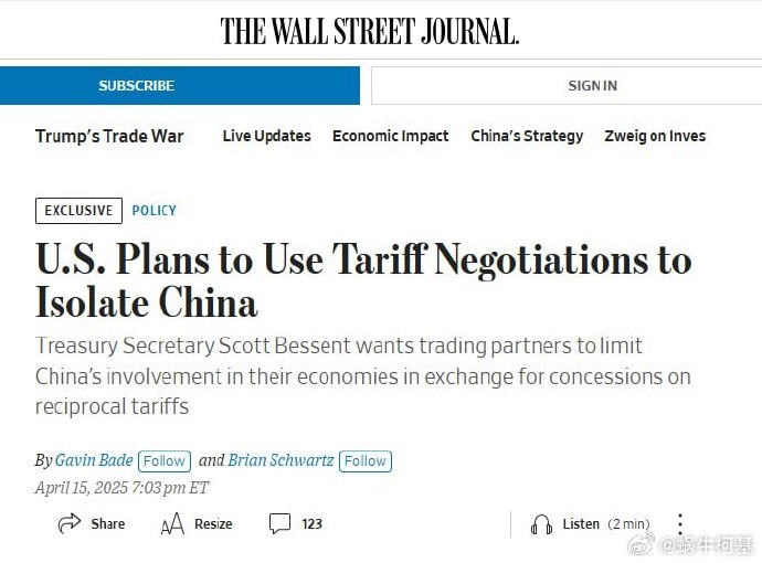 華盛頓希望説服70多個國家限制與北京的貿易關係,以換取降低關税_風聞