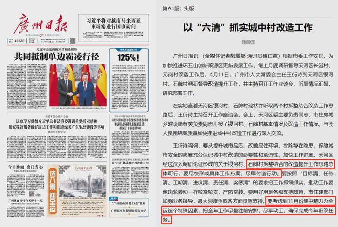 天河區經過深入調研論證,關於石牌村拆整結合的改造提升工作思路總體可行,要儘快形成具體工作方案,儘早付諸行動。
