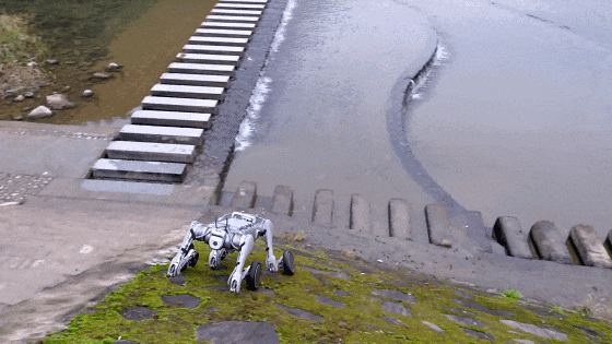 ▲宇樹B2-W通過複雜路段