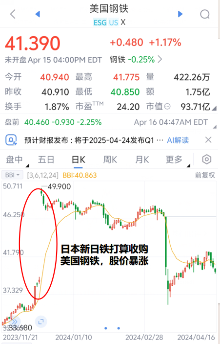 2025年4月特朗普再次下令重新審查日本最大鋼鐵製造商日本製鐵公司(日鐵)收購美國鋼鐵公司(美鋼)的交易,並表示不希望把美鋼交給日本。