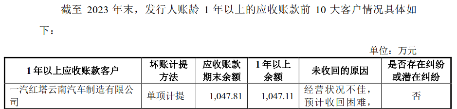 聚焦應收款項,瑞立科密在問詢函回覆中表示,賬齡 1 年以上的應收賬款前 10 大客户中,過半是因為經營狀況不佳,且部分已經發生糾紛。值得注意的是,瑞立科密2023年應收賬款期後回款比例僅52.86%。