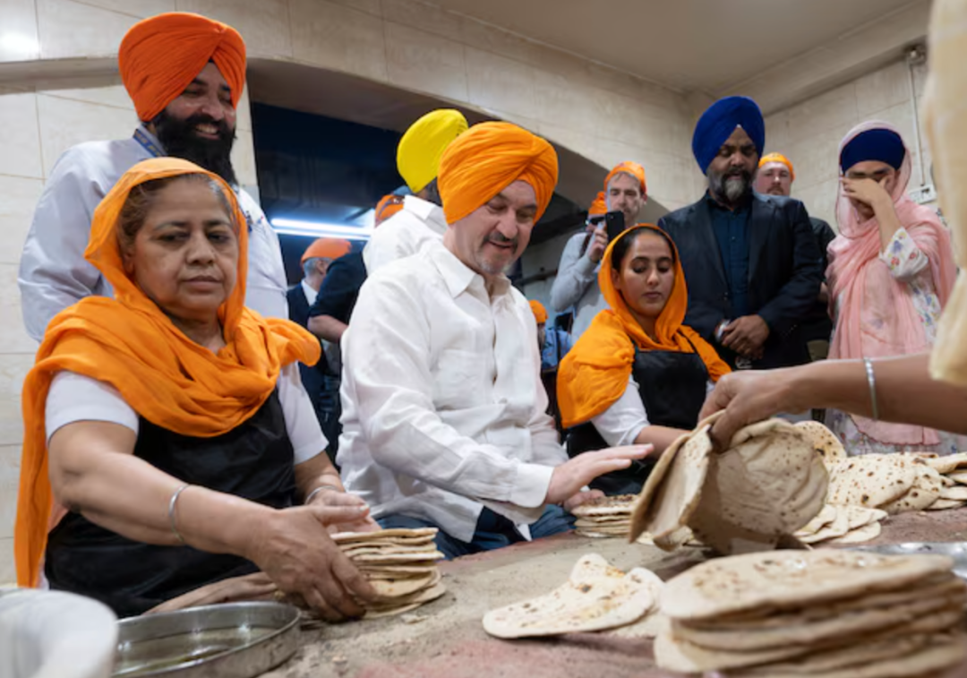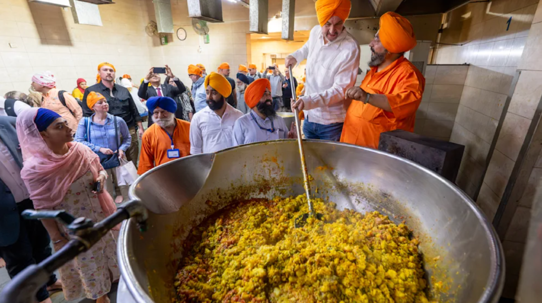 被印度官員帶着走馬觀花吃了一圈後,他又去了錫克教社區,以拉近和當地人的感情。