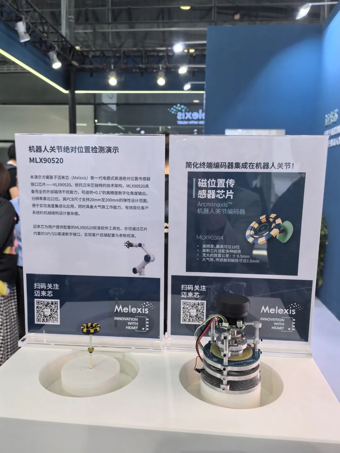 邁來芯針對機器人領域推出了觸覺與關節傳感、電源監控與優化、電機控制、温度與感知等多個領域的產品解決方案。在展會現場,邁來芯展示了3D觸覺傳感器MLX90900、磁位置傳感器芯片MLX90384,以及即將發佈的新一代電感式高速絕對位置傳感器接口芯片--MLX90520等產品。