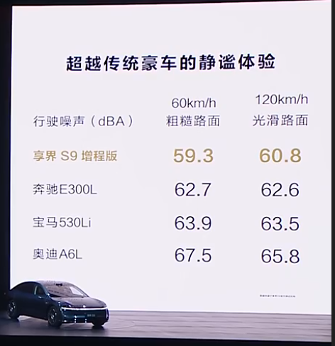 發佈會上,享界S9也是亮了一些這個增程系統的參數,在油耗和靜謐性上,都贏過BBA。