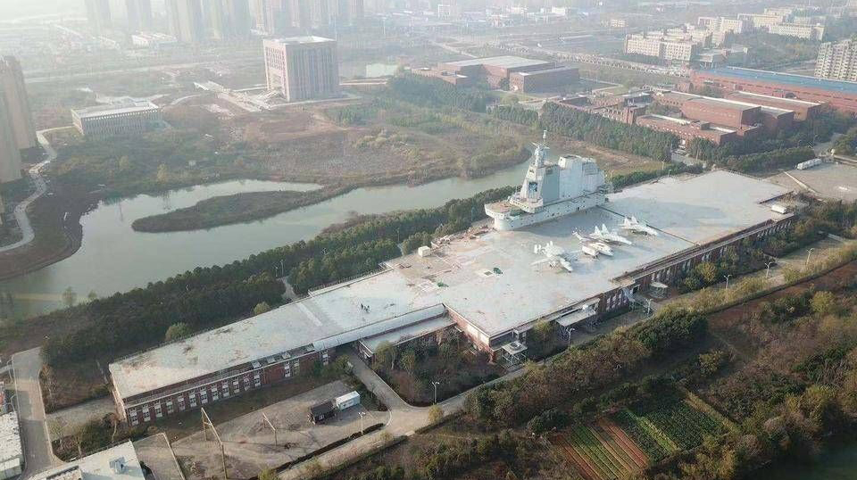 該航母模型的主要作用是評估不同機型在海上使用的潛力,包括它們在航母甲板上的適配性和移動方式。值得注意的是,該結構位於一座建築之上,這一點從衞星圖像上並不明顯。