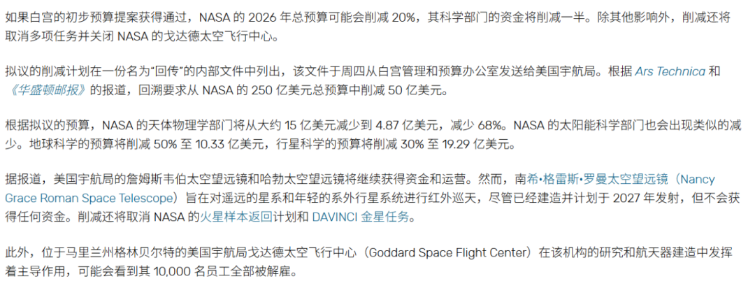 具體到氣象衞星方面,很多都是noaa和nasa的合作項目,所以羅素沃特對氣象項目的攻擊就同時影響了兩個部門,有傳聞甚至美軍的軍事氣象衞星也可能被影響。至於深空探測被砍,就屬於馬斯克這種資本短視屬性在預算部門中的體現了。在預算部門看來,這邏輯和馬斯克需要核聚變一樣,收益難以量化。**但問題是,長期以來美國科技第一的人設中,深空探測不都是極為關鍵的一環嗎?**馬斯克和SPACEX的很多員工選擇這條道路,不也是受到了這方面的影響嗎?