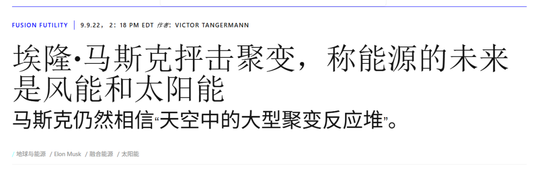 典型的比如前陣馬斯克説不需要可控核聚變。這不是他第一次表達這種觀點,之前就多次發表過批評可控核聚變的的言論,認為不如鋪上更多的太陽能電池板。