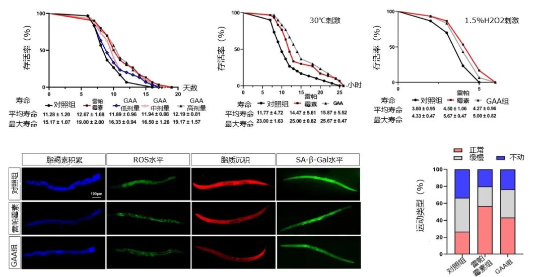 圖注:靈芝酸A能在正常和應激刺激下延長線蟲壽命,還能改善健康壽命