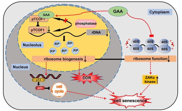 圖注:靈芝酸A確保了適當的核糖體生物合成和隨後的核糖體功能,從而防止了細胞衰老