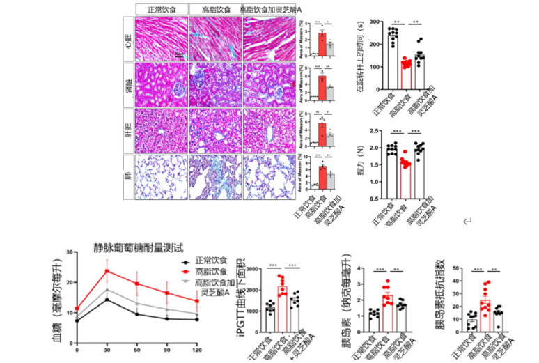 圖注:靈芝酸A對肥胖小鼠各器官損傷的保護以及對身體活動能力的影響