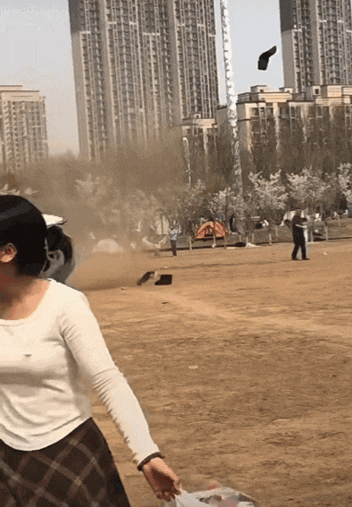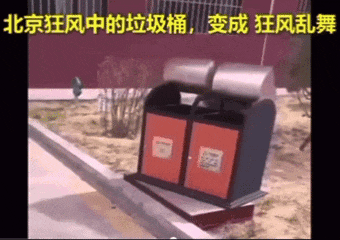 再過一會,風更大了,小區平日裏默默無聞的垃圾桶,已經開始瘋狂。