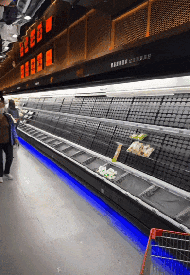 不信邪的打工人想下班後去超市碰碰運氣,結果超市的貨架簡直比臉還乾淨。怎麼突然有了一種夢迴三年前的感覺。