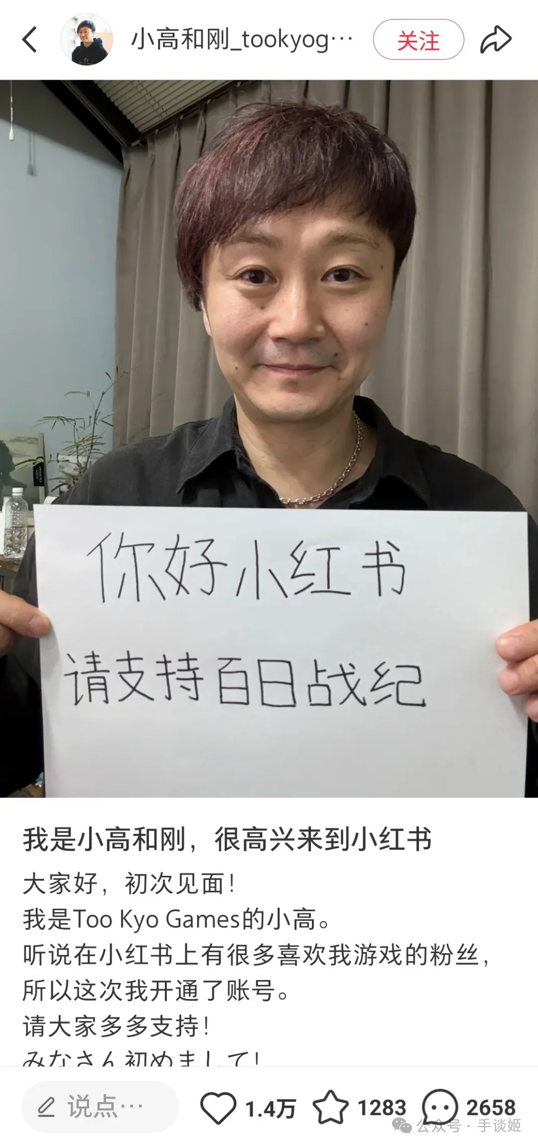 4月12日,日本知名腳本作家小高和剛同時入駐B站與小紅書,隨後發了倆視頻。