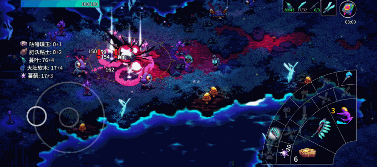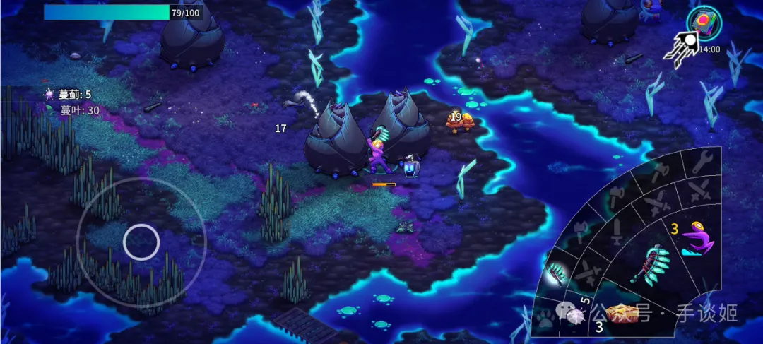 遊戲玩法是非常經典的建造升級,經典不意味着老掉牙,依然會讓人上癮。遊戲中的植物和怪物基本上都能採集,可以製造出各種各樣的武器,房屋的牆之類的。