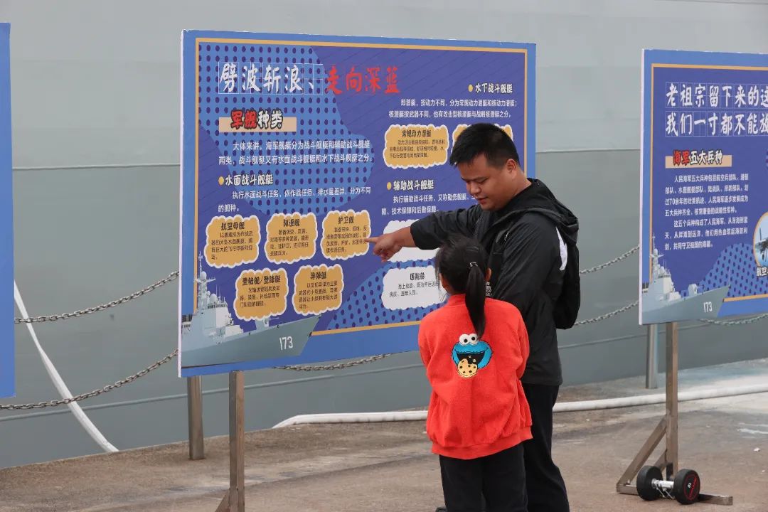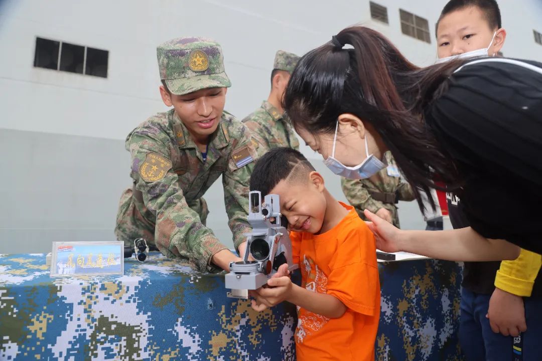 除了參觀艦艇,軍營開放活動還精心設置了視聽欣賞區、觀摩體驗區和國防宣教區。