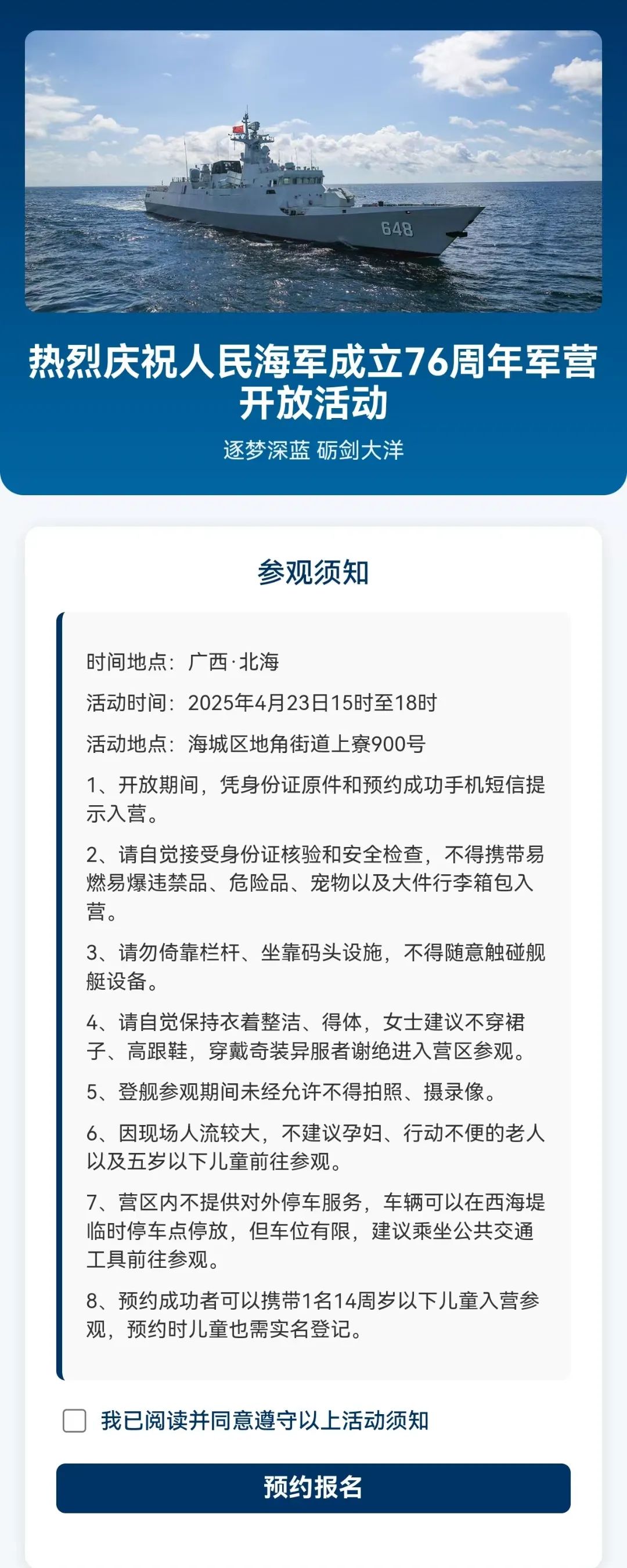 南南邀你看軍艦!湛江市、北海市艦艇開放預約通道公佈_風聞