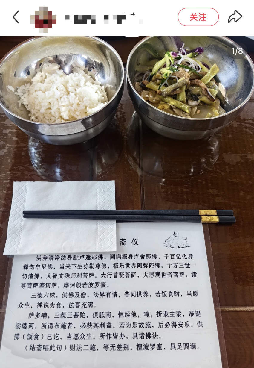 社交平台上,甚至還有不少網友整理出不同城市“寺廟吃齋”的攻略,從飯堂位置、菜品口味、價格高低都有詳細的測評。