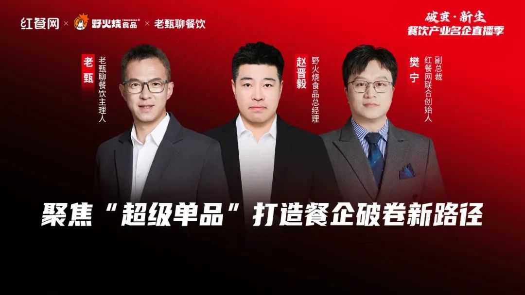 為此,在本季的第九期直播中,紅動食刻邀請了野火燒食品總經理趙晉毅、老甄聊餐飲主理人老甄,共同拆解“聚焦‘超級單品’打造餐企破卷新路徑”這一話題。