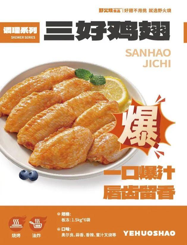 野火燒食品是一家集研發、生產、銷售於一體的智能化工廠,專注於以雞翅為核心的雞類深加工產品。目前,野火燒企業已成功構建起調理系列、串系列、油炸系列、生炸系列四大產品品類。