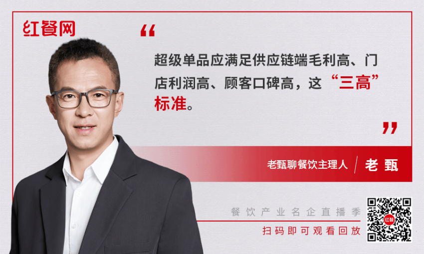 老甄認為,超級單品應滿足供應鏈端毛利高、門店利潤高、顧客口碑高,這“三高”標準。此外,想要打造超級單品還需要考慮這兩方面。一是不同地域人羣對味型、食材的偏好;二是要順勢而為,在現有消費認知基礎上創新。