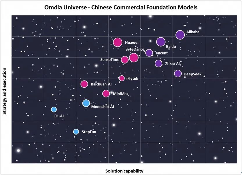在執行力的評測上,Omdia重點對模型創新能力、商業化進展進行評估,包括了創新力、戰略和路線圖、上市戰略、直行業覆蓋率、客户數量、部署服務和合作夥伴和生態系統等維度。